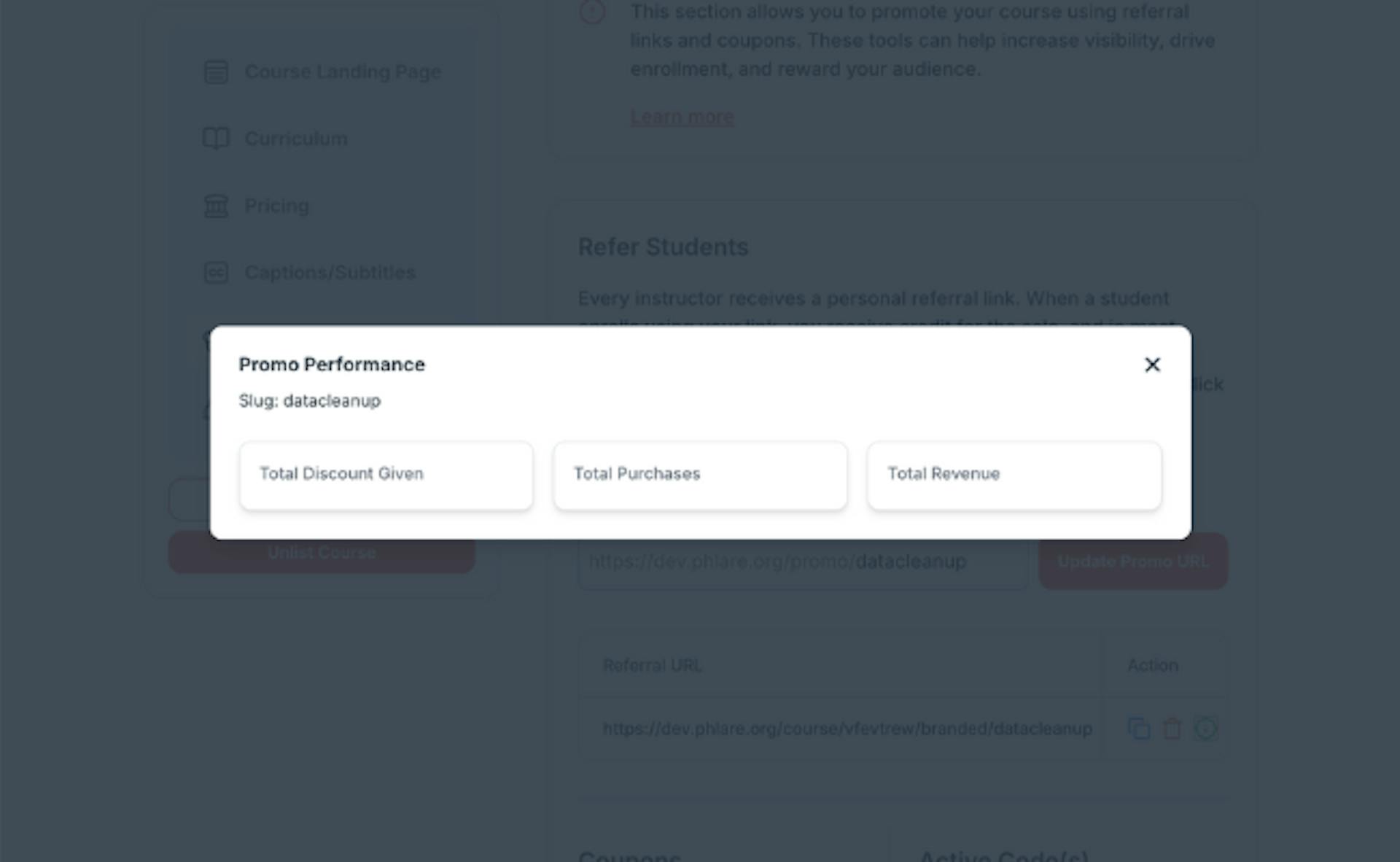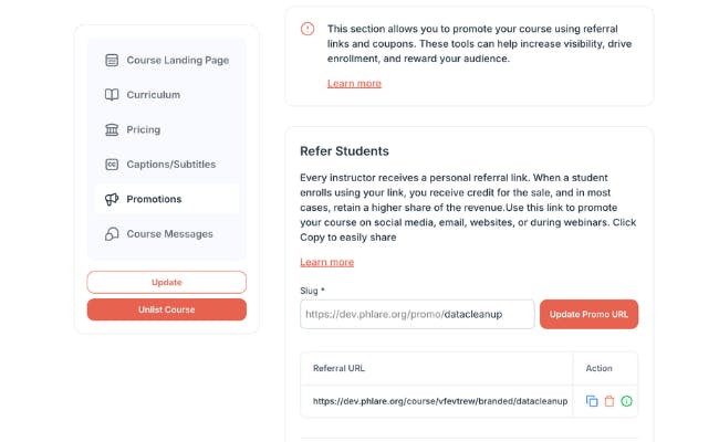 Share your instructor link to market your course and attract students directly.